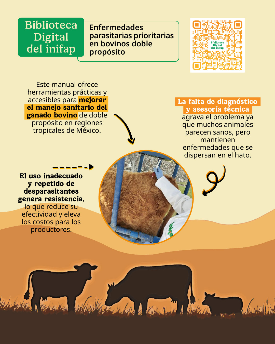 El INIFAP, institución sectorizada a la Secretaría de Agricultura y Desarrollo Rural, pone esta publicación a disposición en su Biblioteca Digital como una herramienta clave para reducir pérdidas productivas y fortalecer la sostenibilidad de la ganadería.